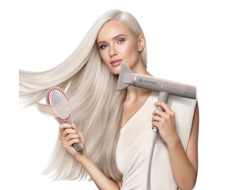 Yamaguchi EMS Hair Brush — многофункциональный прибор для ухода за волосами и кожей головы, работающий сразу в нескольких направлениях. Он помогает в домашних условиях решить проблему восстановления, защиты и укрепления волос, используя для этого популярные средства из области современной трихологии. Высокая эффективность девайса базируется на одновременной работе сразу нескольких технологий: микротоков, EMS, терапии красным светом LED Therapy, ионизации, вибрации и акупунктуры.